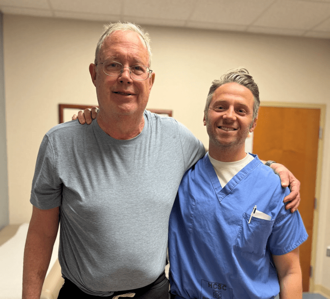 Now, he works out five days a week at the local gym and has no lasting heart damage. His care team continues to monitor him for stage 3A chronic kidney disease, pulmonary sarcoidosis, sleep apnea and previous treatment for skin cancer.